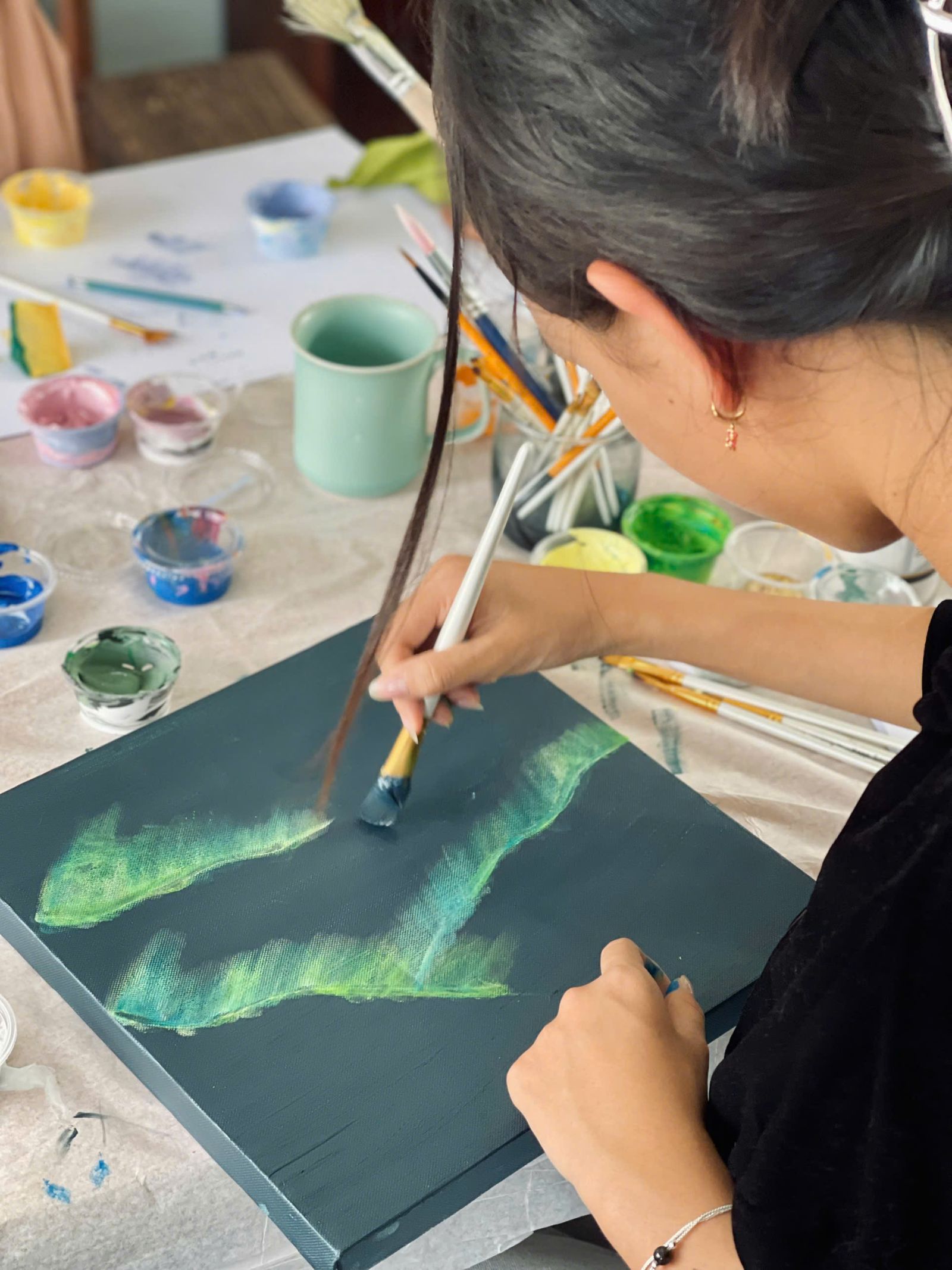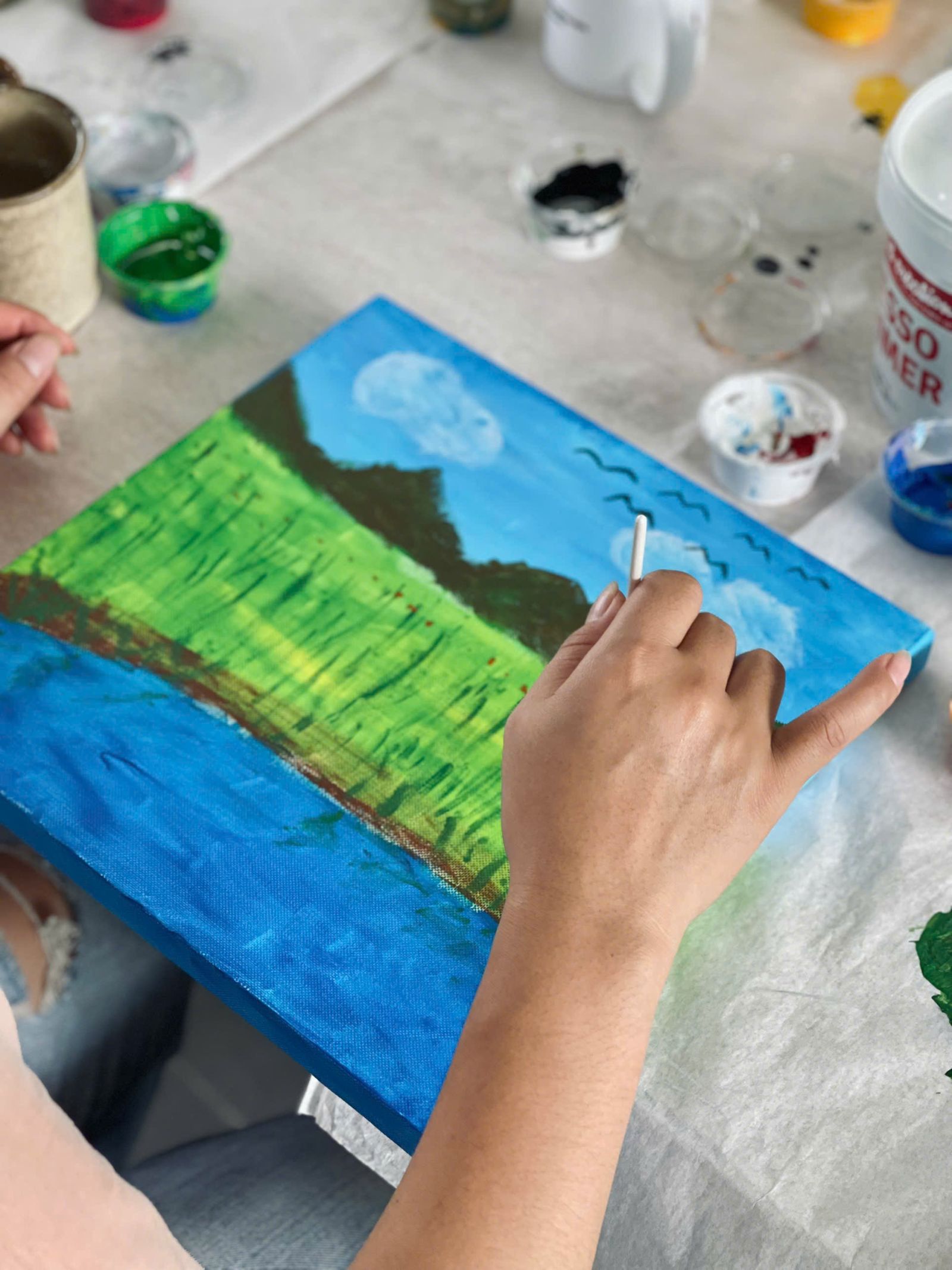 Từ cọ vẽ thông dụng, cọ sơn lớn, khăn giấy hay pay màu, tất cả đều có thể ứng dụng để làm nên những hoạ tiết đặc biệt, tạo thêm hiệu ứng cho tác phẩm riêng