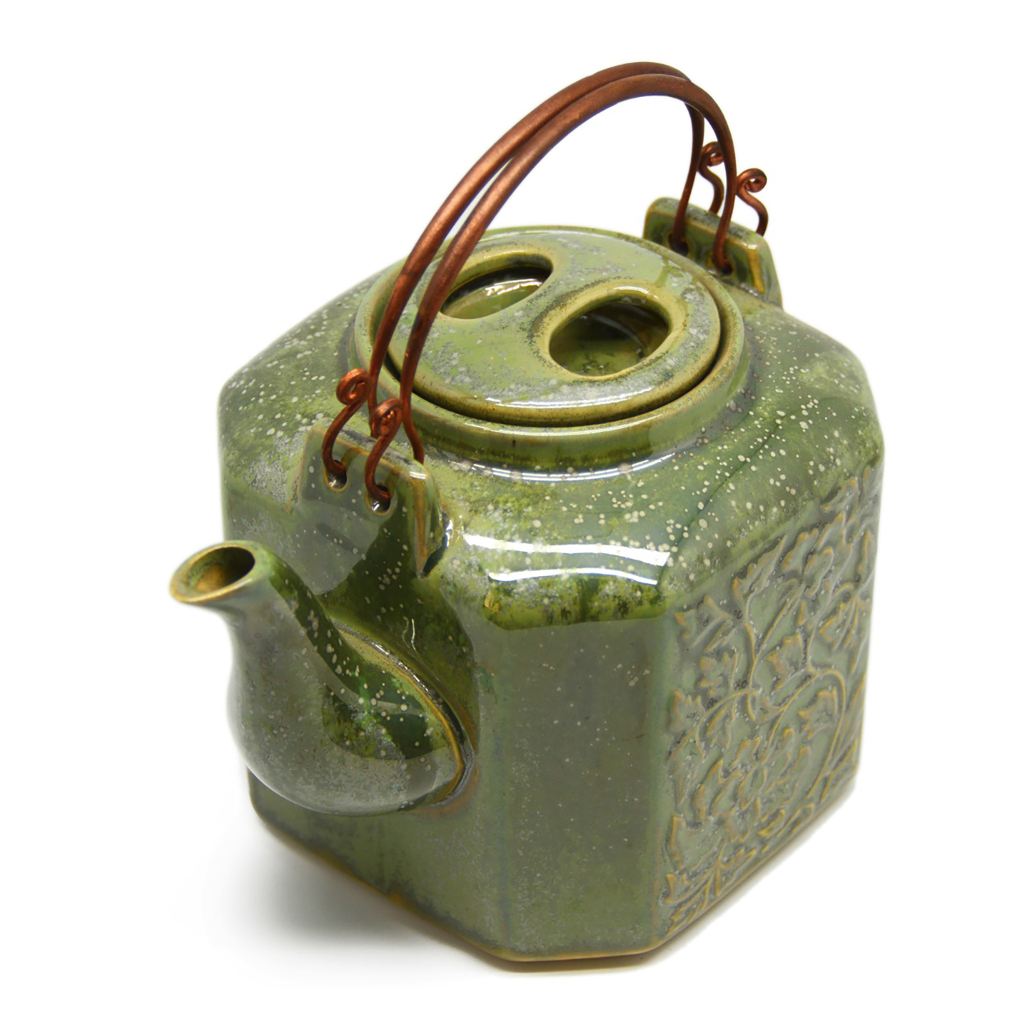 Product name: Medium Hexagon teapot with bronze handle (flower pattern) - 0014